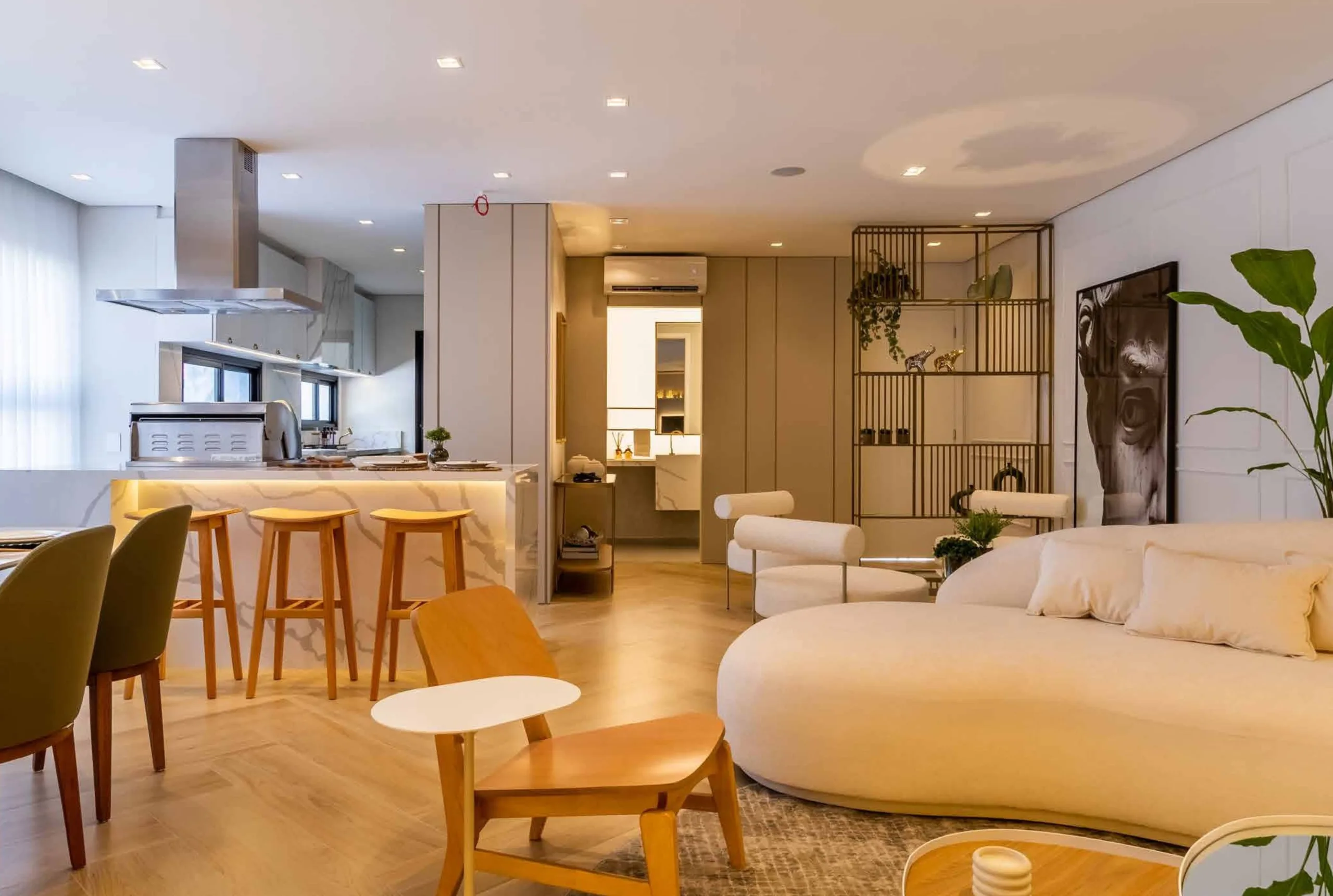 São 198m² privativos, em uma tipologia que surpreende pelo projeto inteligente, trazendo hall íntimo, 2 varandas, ventilação cruzada, 2 quintais, além de uma área social generosa, perfeita para receber.
