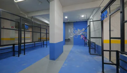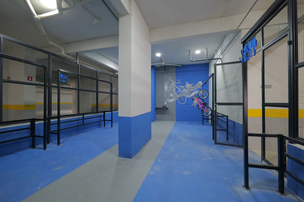 Bicicletário No subsolo existe um espaço para o armazenamento das bicicletas, incentivando a atividade física e esse transporte tão saudável