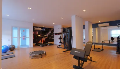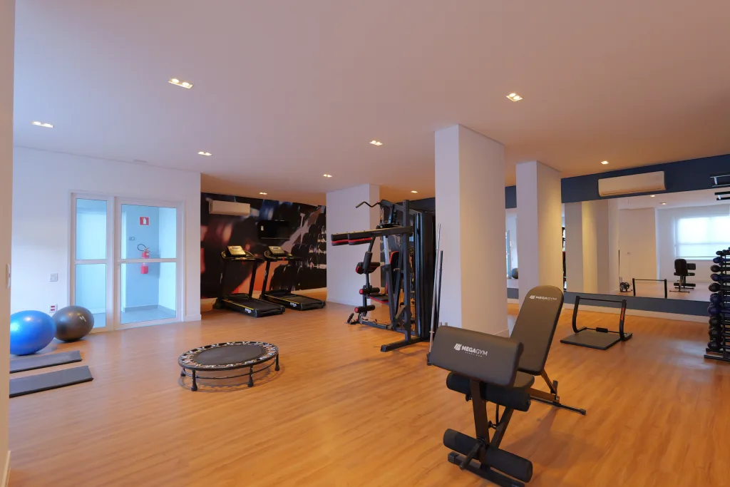 Fitness A Academia foi priorizada com ampla dimensão e equipada com aparelhagem completa para exercícios.