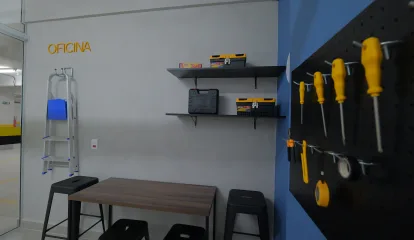 Oficina de Pequenos Reparos Desenvolva pequenos trabalhos e manutenções você mesmo com ferramentas compartilhadas. Um espaço elaborado para atividades manuais, ajustes simples e pequenos reparos. Aqui você faz acontecer!