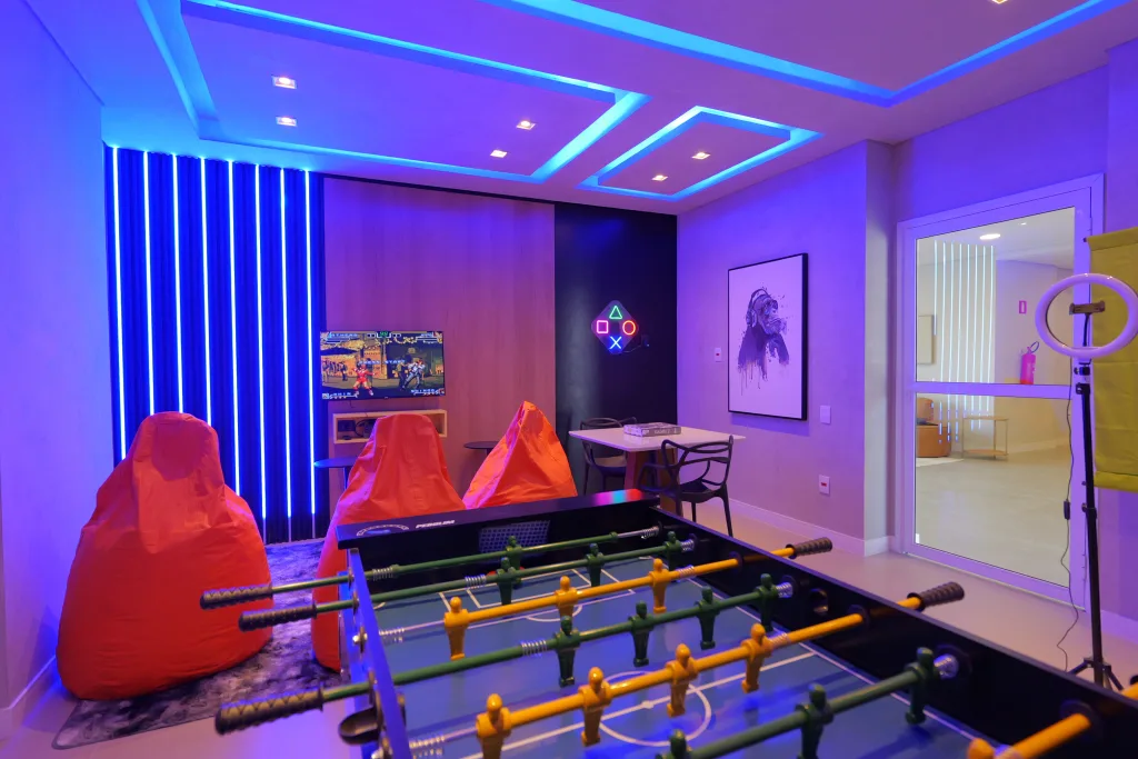 Sala Jovem Youtuber Gamer Na Sala Jovem Youtuber Gamer vão rolar altos papos, jogos de tabuleiros e games, além de vídeos incríveis para as mídias sociais com uma super tela chroma key.