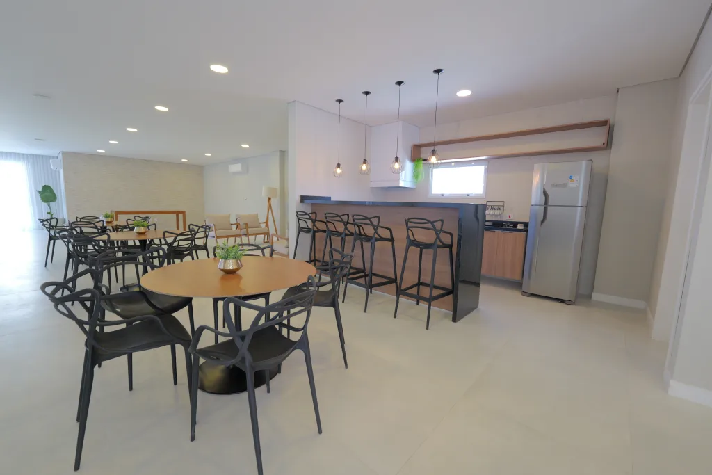 Salão de festas Grande Salão de Festas com 170 m2, possuindo ampla área para festas infantis e até recepções de porte médio.