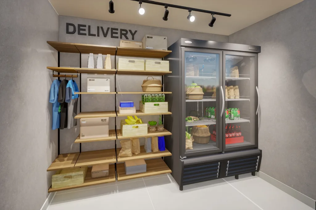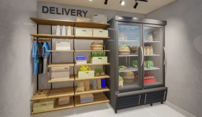 Espaço Delivery Uma área para armazenar os produtos entregues com segurança e comodidade aos moradores.